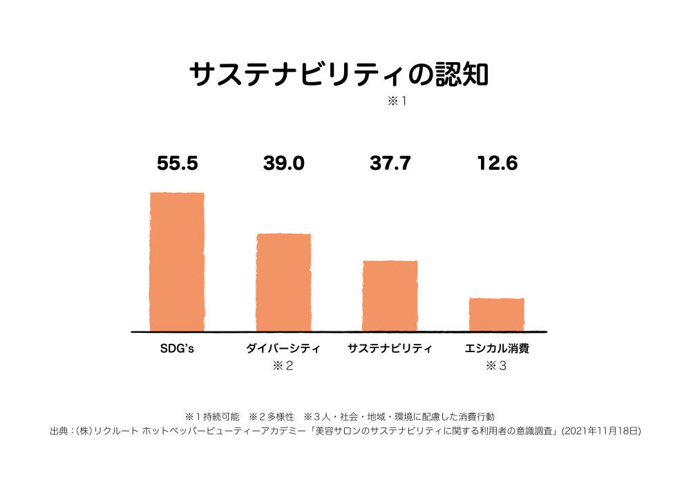 昨今、美容業界でもSDG’sに関する取り組みが多く見られます。また、環境保全への関心を持つサロンさまも多くなってきたように感じております。では、一般の方はどこまで環境保全への意識をお持ちなのでしょう?そこで今回、2021年11月18日ホットペッパービューティーアカデミー掲載の「サステナビリティに関する利用者の意識調査」から、サロン利用者がどのくらい“環境保全への関心”をお持ちなのか軽く紐解いていきましょう。